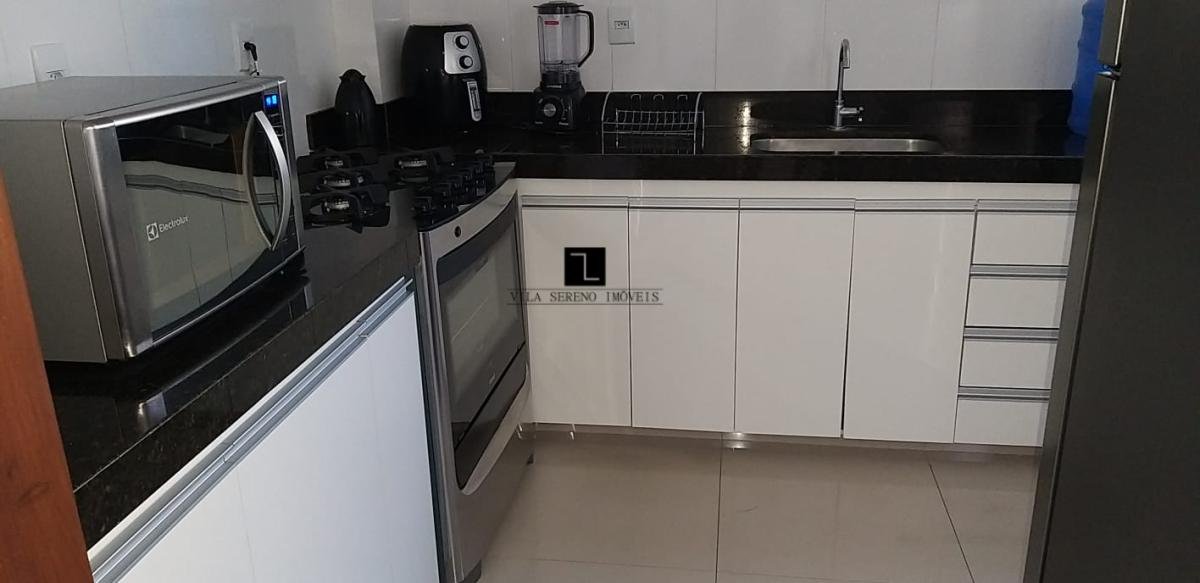 Excelente Apartamento 2 quartos, sendo 1 suíte com ar condicionado e uma linda vista para a cidade, armário em 1 quarto, rouparia, sala ampla para 2 ambientes com sacada, banho social e banho suíte com armários sob bancada pia e box com chuveiro, cozinha com armários, área de serviço, 2 vagas de garagem.