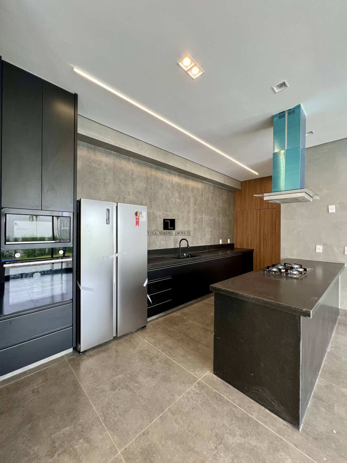 - Cozinha ampla com forno elétrico, geladeira, microondas, fogão e coifa