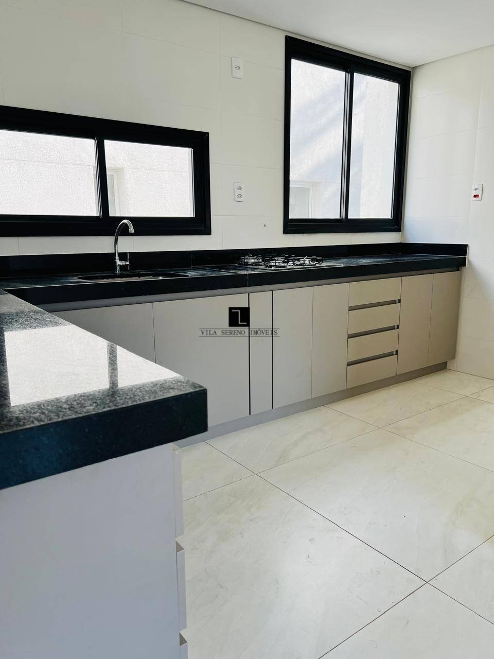1º Piso: 2 quartos, sendo 2 suítes com armários, piso em vinílico, Sala para 2 ambientes com piso de porcelanato, estar e jantar, lavabo, cozinha ampla com armários e piso em porcelanato e bancadas em granito, área de serviço.