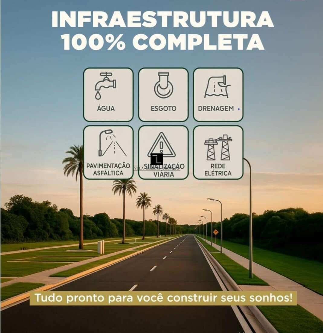 Lotes planos a partir de 360 m² com Infraestrutura completa, água, energia, asfalto, meio-fio, rede pluvial, esgoto, praças, área verde, academia ao ar livre, playground e espaços de convivência.