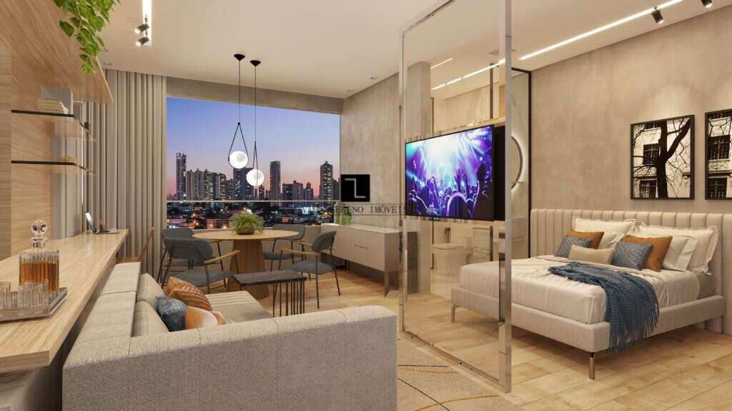 Viva com praticidade e conforto em um studio moderno, projetado para oferecer funcionalidade sem abrir mão do estilo.